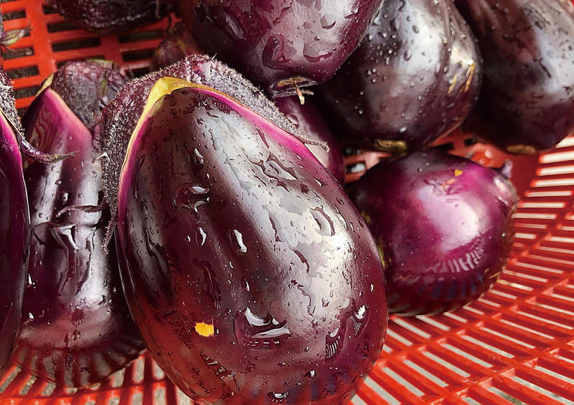大きめなコロッとした水ナスは漬物で有名ですが、生で食べるとその甘さに驚かれるお客様が後を絶ちません。ぬか漬や奈良漬などお好みで美味しさをお楽しみいただけます。